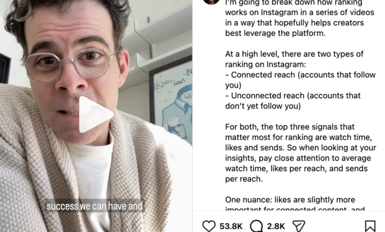 Instagram: According to Adam Mosseri, Head of Instagram, the primary ranking signals in 2026 are watch time, likes, and sends. Digging deeper, Instagram differentiates between "connected reach" (content from accounts a user follows) and "unconnected reach" (content from new accounts, often through Explore or Reels). Likes are more critical for connected reach, signaling approval within a known network, while "sends" (direct shares) are paramount for unconnected reach, indicating high value and shareability. Instagram’s algorithm analyzes content in four stages: building an inventory of available content, assessing signals, making predictions about user interaction, and finally scoring and ranking.